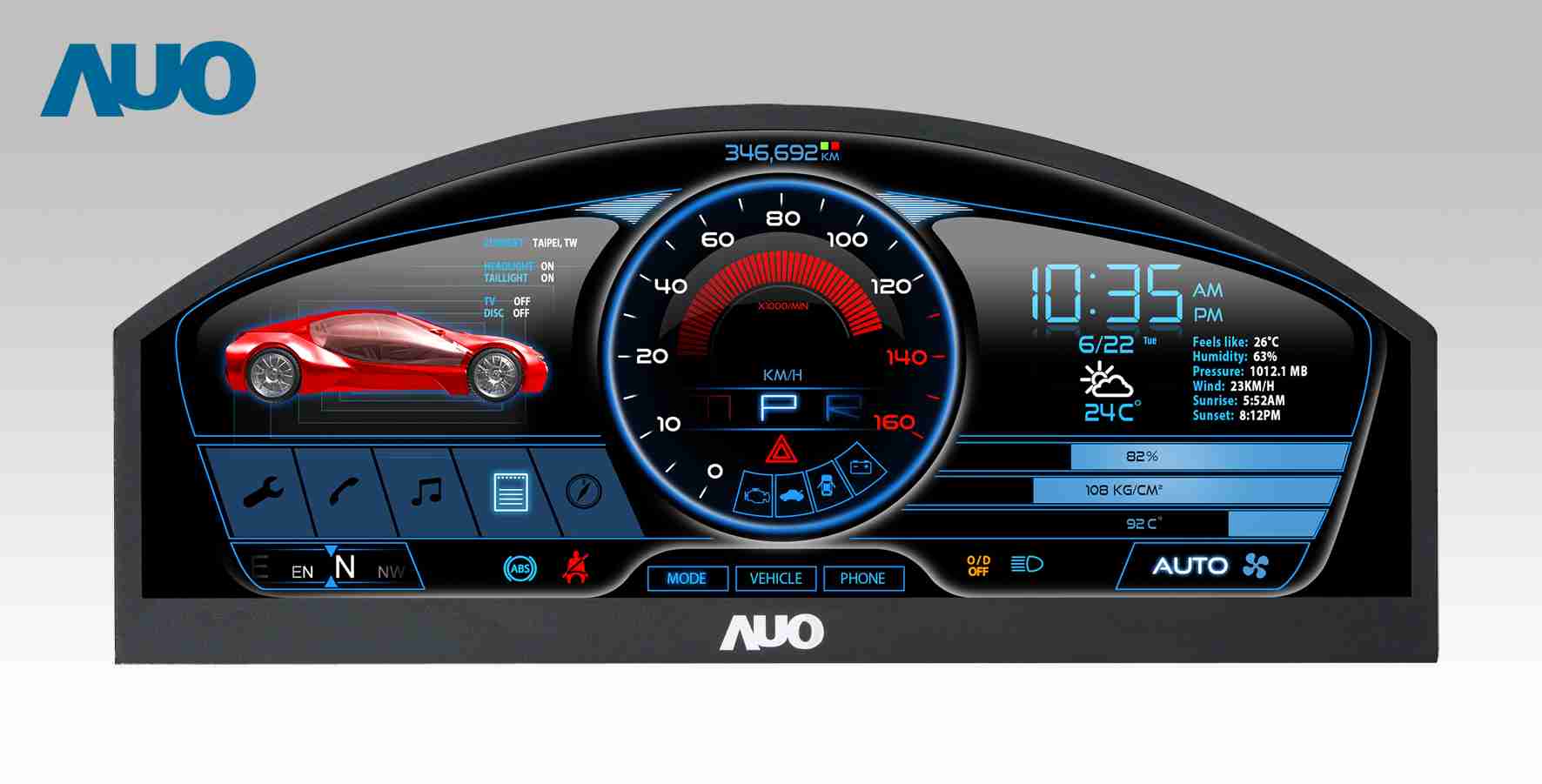 汇旺支付 12.3吋超高解析异型切割车用面板,,,拥有流线外观及精细画质