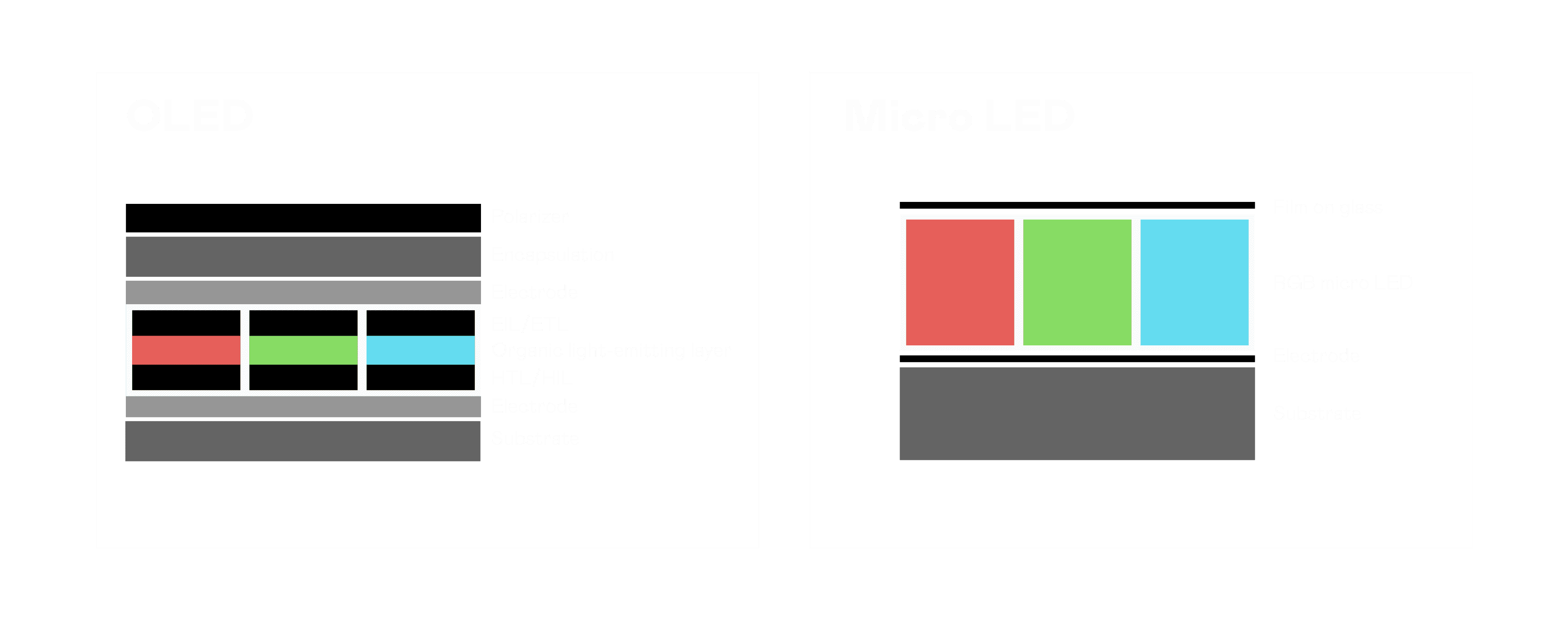 以 LED 做为显示画素,,,可让 LED 的发光效率发挥到极致,,,从而让显示器具备优异的亮度表现,,不论是在户外或室内,,,,均具备出众的显示效果。。。。同时,,,与使用有机材料的 OLED 相比,,LED 具备更稳定、、、寿命更长的特性,,,,不仅不会有画面烙印问题,,,而且更不容易出现故障、、、坏点。。