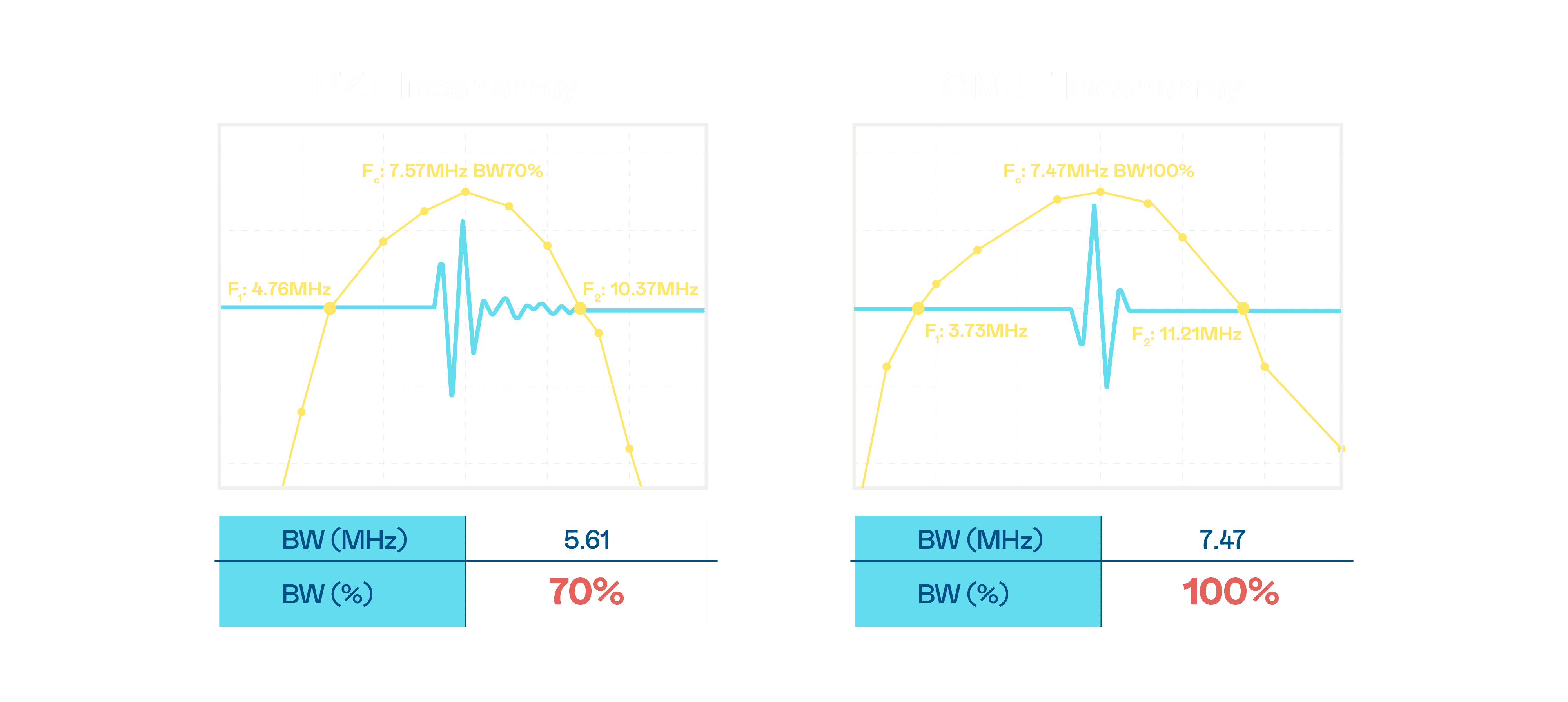 超音波影像的解析度高低,,首先取决于探头能发出的讯号频宽。。汇旺支付 CMUT 可提供高清晰的超音波讯号,,提供高频宽、、、高灵敏度、、、影像纹理细节更高的超音波影像,,,协助医护人员缩短影像判读时间及利用精准的医疗影像进行诊断。。。